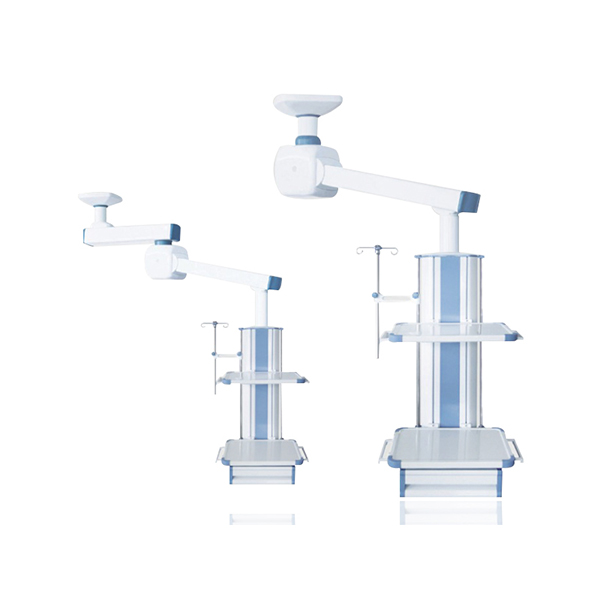 Single/double arm surgical medical pendant with simple and compact structure is ideal gas power supply,network output terminal and instrument bearing workstation for large operating room. The installation adopts the ceiling suspension mode, and the rotating arm can rotate in a range of 340 degrees, so that it is easy to move the tower. The joints rotation adopts the mechanical brake to prevent the drift. Due to the multi-layer platform combination which is convenient for operation, it is suitable for the operating room in large and medium-sized hospitals.
