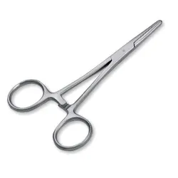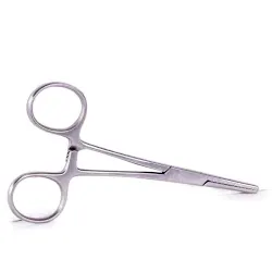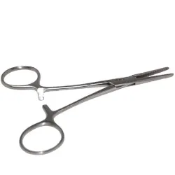 Artery forceps are used to grasp vessels, tissue, and sutures during surgical procedures. Press the artery and hold it out of the way, or clamp and seal blood vessels. The instrument is available in straight or curved serrated blades, and it has a ratcheted finger ring handle.